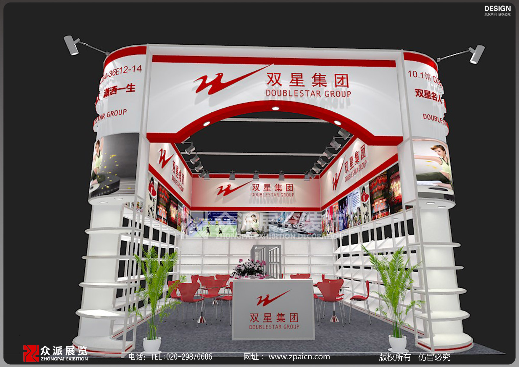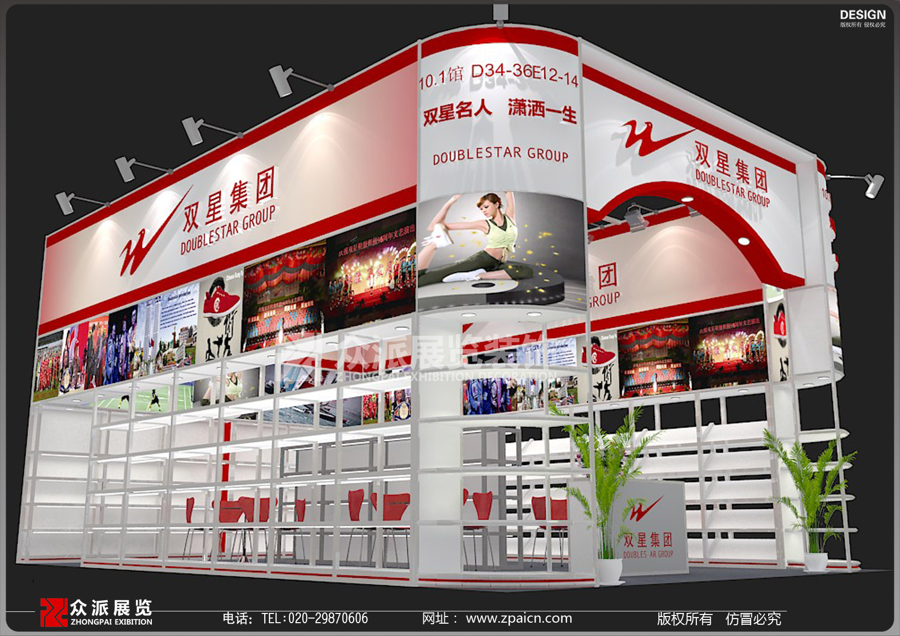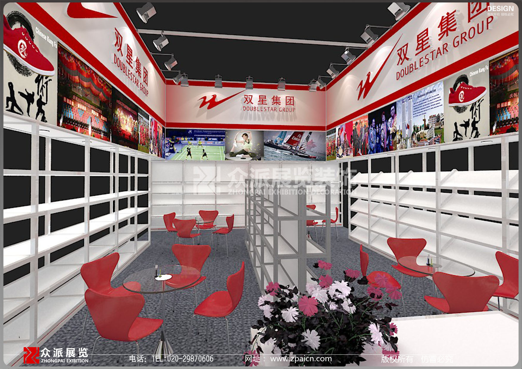 400-892-6892 18676834565 广交会——双星集团展位设计搭建效果图